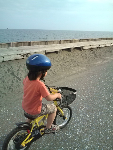 息子の自転車特訓がてら夕方波をチェックしに行ったら